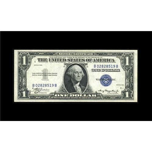 <B>Fr. 1607 $1 1935 B-B Block Experimental Silver Certificate. Gem Crisp Uncirculated.</B></I><BR>This is the scarcest of of these experimentals which were printed beginning November 26, 1937 on special paper. This note is well margined with hilly embossing.