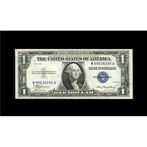 <B>Fr. 1607 $1 1935 Mule Silver Certificate. Extremely Fine-About Uncirculated.</B></I><BR>This scarce M-A block Mule variety carries Macro back plate 947. The embossing is evident as well as two soft folds.