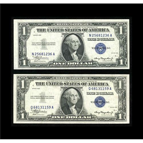 <B>Fr. 1607 $1 1935 Mule Silver Certificates. Two Examples Choice About Uncirculated</B></I><BR>This group contains a pair of crisp notes ,one from the N-A block with Macro BP 958 and the other from the Q-A block with Macro BP 957.<BR>