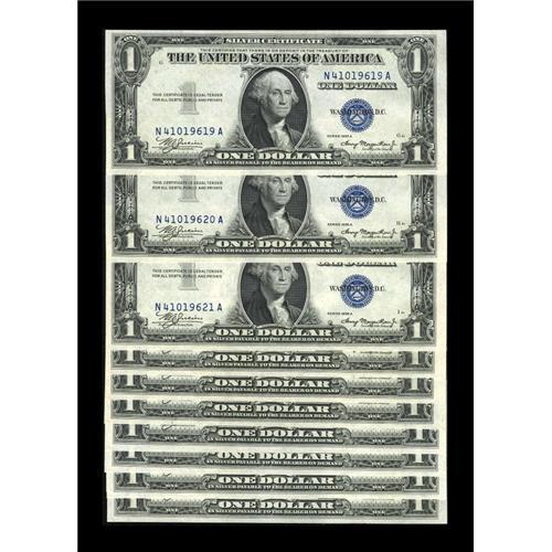 Fr. 1608 $1 1935A Mule Silver Certificates. Ten Consecu