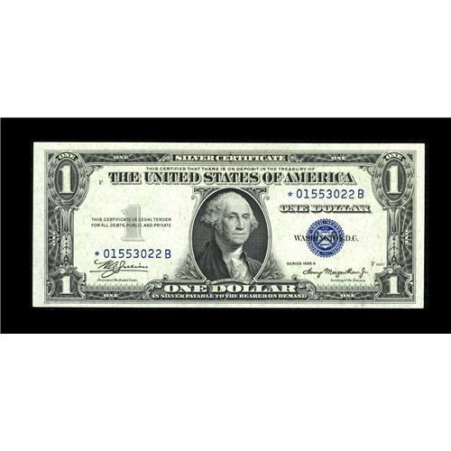 <B>Fr. 1608* $1 1935A Silver Certificate. Choice Crisp Uncirculated.</B></I><BR>A touch small margin is noted at bottom than is present on the other three sides.<BR><BR><b>Shipping:</b> Coin/Currency (<a target="_blank" href="http://www.heritageauctions.com/common/shipping.php">view shipping information</a>)
