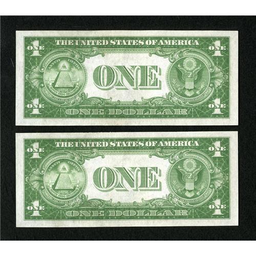 Fr. 1608 Consecutive Pair of $1 1935A Mule Silve