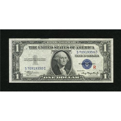 <B>Fr. 1609 $1 1935A R Silver Certificate. Choice Crisp Uncirculated.</B></I><BR>A very nice example of this "R" experimental silver certificate that is original and fresh with too much handling to justify the gem grade.<BR><BR><b>Shipping:</b> Coins & Currency (<a target="_blank" href="http://www.heritageauctions.com/common/shipping.php">view shipping information</a>)