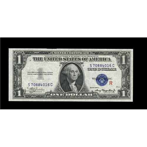 <B>Fr. 1609 $1 1935A R Silver Certificate. Gem Crisp Uncirculated.</B></I><BR>This regular paper experimental has very even margins with the left slightly bigger and excellent punch through embossing.