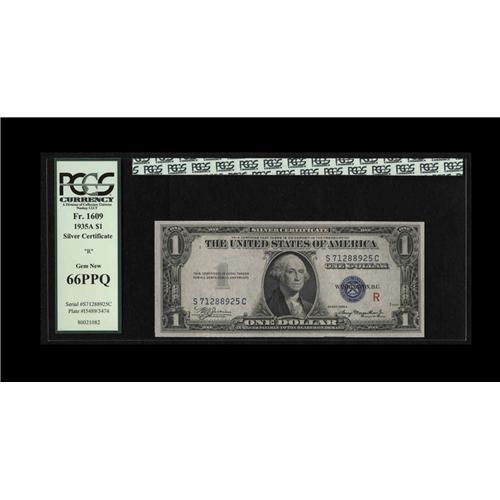 Fr. 1609 $1 1935A R Silver Certificate. PCGS Gem New 66 Fr. 1609 $1 1935A R Silver Certificate. PCGS