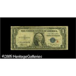 <B>Fr. 1609* $1 1935A "R" Silver Certificate. Very Good.</B></I><BR>A well circulated but fully intact example of this rare star, which had a printing of just 12,000 pieces. Lot:15672
