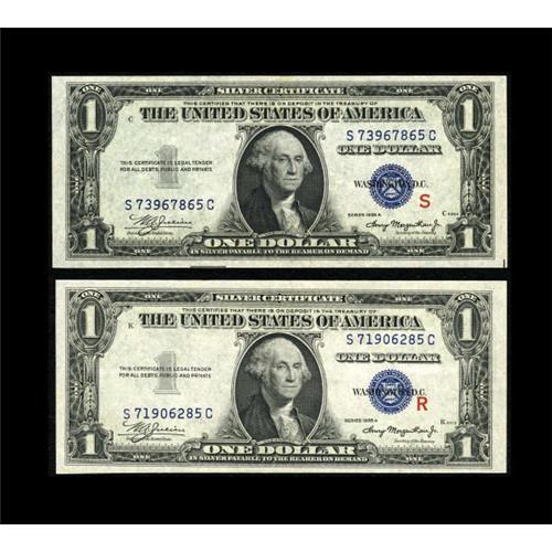<B>Fr. 1609/1610 $1 1935A R & S Silver Certificates.</B></I><BR> The "R" note grades <B>AU</B></I> while the "S" note grades <B>Choice CU</B></I>.<BR><BR><b>Shipping:</b> Coins & Currency (<a target="_blank" href="http://www.heritageauctions.com/common/shipping.php">view shipping information</a>)