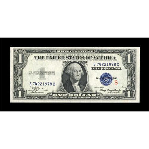 <B>Fr. 1610 $1 1935A S Silver Certificate. Very Choice Crisp Uncirculated.</B></I><BR> The surfaces retain all the as made qualities one would expect. The centering keeps the note from gem.<BR><BR><b>Shipping:</b> Coins & Currency (<a target="_blank" href="http://www.heritageauctions.com/common/shipping.php">view shipping information</a>)