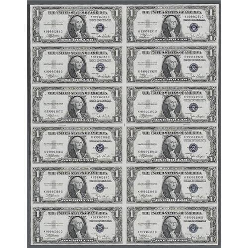 <B>Fr. 1612 $1 1935C Silver Certificates. Uncut Sheet of 12. Choice Crisp Uncirculated.</B></I><BR>This uncut sheet does not have any folds. Twelve subject sheets are numbered consecutively.<BR><BR><b>Shipping:</b> Coin/Currency (<a target="_blank" href="http://www.heritageauctions.com/common/shipping.php">view shipping information</a>)