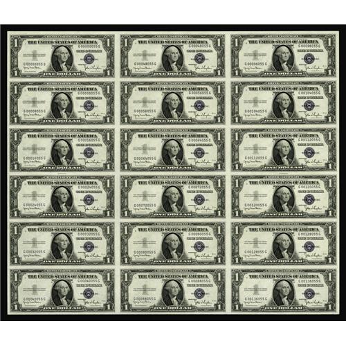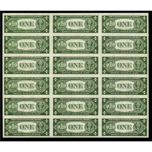 Fr. 1613N $1 1935D Narrow Silvers. Uncut Sheet of 18 Fr. 1613N $1 1935D Narrow Silver Certificates.