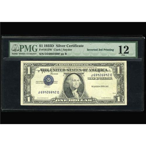<B>Fr. 1613W $1 1935D Silver Certificate. Fine.</B></I> This is a nice early example with an inverted third printing.