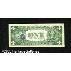 <B>Fr. 1614 $1 1935E Silver Certificate. About New.</B></I><BR>The entire third printing is boldly offset on the back. Part of the serial number is also offset back on to the center of the face. A very unusual error. Lot:15314