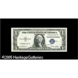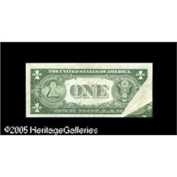 <B>Fr. 1614 $1 1935E* Silver Certificate. About Uncirculated.</B></I>A scarce Star note error with a folded over triangular void on the back that is unprinted. While this type of error generically is not especially scarce, it is quite so on a Star note and especially on a Silver Certificate Star. Lot:15267