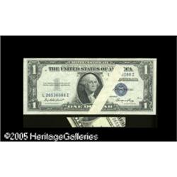 <B>Fr. 1614 $1 1935E Silver Certificate Extremely Fine.</B></I> One of a series of retained obstruction notes, with the retained obstruction piece a section of currency paper on this error. Lot:15427