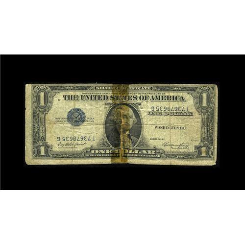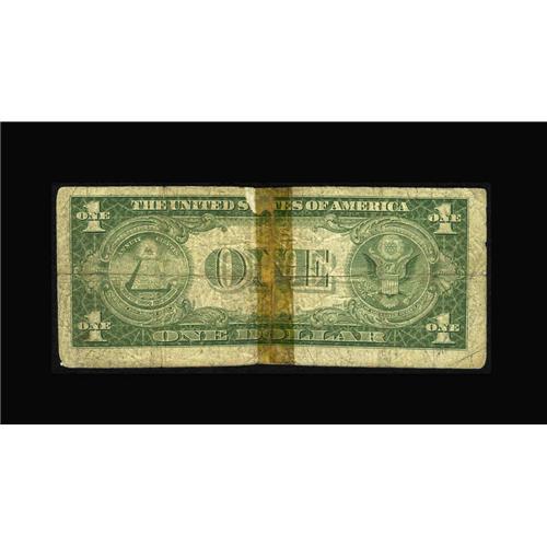 <B>Fr. 1614 $1 1935E Silver Certificate. Very Good.</B></I> An interesting inverted third printing on this silver certificate. Unfortunately, this note used to be two notes and was put back together with tape.