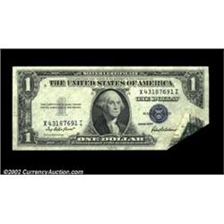 Fr. 1615 $1 1935F Silver Certificate. Extremely Fine. An interesting error which is a combination obstruction and foldover. Important notice: We expect to be auctioning lots at the rate of 200-250 per hour. Sometimes eBay Premier live bid software cannot keep up with that pace, so we strongly recommend that you place a realistic proxy bid now as insurance to avoid disappointment. Also please note that all Heritage/CAA lots purchased through eBay Premier carry a 20% Buyer's Premium. Please make sure you read the Terms and Conditions.