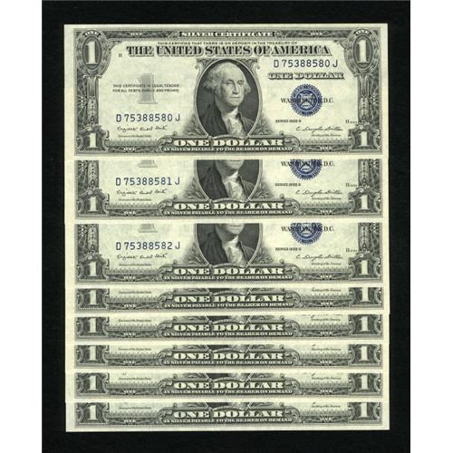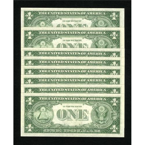 <B>Fr. 1617 Eight Consecutive $1 1935G With Motto Silver Certificates. Very Choice Crisp Uncirculated.</B></I><BR> Only margin size keeps the gem grade out of reach as each note has superb embossing, crackling fresh paper and radiant ink colors.<BR><BR><b>Shipping:</b> Coins & Currency (<a target="_blank" href="http://www.heritageauctions.com/common/shipping.php">view shipping information</a>)