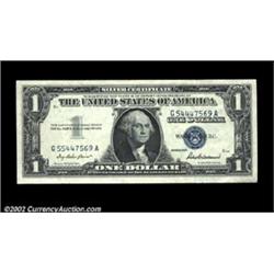 Fr. 1619 $1 1957 Silver Certificate. Extremely Fine. Mismatched serial numbers G55447569A/G54447569A. Important notice: We expect to be auctioning lots at the rate of 200-250 per hour. Sometimes eBay Premier live bid software cannot keep up with that pace, so we strongly recommend that you place a realistic proxy bid now as insurance to avoid disappointment. Also please note that all Heritage/CAA lots purchased through eBay Premier carry a 20% Buyer's Premium. Please make sure you read the Terms and Conditions.