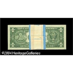 Fr. 1619 $1 1957 Silver Certificates. 11 Consecutive Ex <B>Fr. 1619 $1 1957 Silver Certificates. Original Pack of 100. Gem Crisp Uncirculated.</B></I><BR>A few of the top notes display a slight bend on this handsome pack.<BR> 100 notes <BR><BR><B>Important notice:</B> Heritage usually auctions material at the rate of 200-250 lots per hour. On some occasions eBay Live bid software or the Internet may not be able to keep up with the pace of the auction. We recommend placing a realistic absentee bid now as insurance to avoid disappointment. Occasionally the auctioneer may eliminate or reject an eBay Live bid, and the auctioneer may also reopen a lot after the close of the eBay live bidding (usually because we missed an audience bid), and may reject your bid even if it shows you as the winning bidder. By bidding via eBay Live, you agree that Heritage may award the lot to another bidder at its sole discretion under the circumstances described above or any other reasonable circumstances. Since eBay bids are not shown to us until we open the lot on the floor, we treat those bids just like floor bids. In most cases the floor responds before the eBay bid is presented to us, due to Internet lag time, so for consistency we have made it a policy that floor bids are always considered first over tie eBay live bids. Also please note that all Heritage lots purchased through eBay Live carry a 20% Buyer's Premium. Please make sure you read the Terms and Conditions before you bid. This lot is being auctioned in conjunction with a live floor auction by Heritage Galleries & Auctioneers. All final auction and invoice information will be supplied by Heritage Galleries & Auctioneers, and all other information should be considered preliminary. Lot:16236