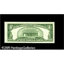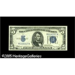 <B>Fr. 1651 $5 1934A Silver Certificate. About Uncirculated.</B></I><BR>The very rare late finished face plate 307 variety, which Oakes notes is thirty times as rare on a regular 1934A $5 as on a North Africa 1934A $5. Lot:15696