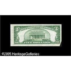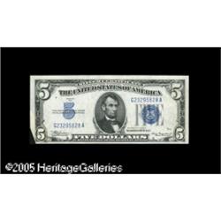 <B>Fr. 1651 $5 1934A Silver Certificate. Choice New.</B></I><BR>The lower left corner on this Silver Certificate folds out to reveal a fairly sizeable blank butterfly. Lot:15268