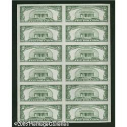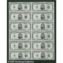 <B>Fr. 1652 $5 1934B Silver Certificate. Uncut Sheet of 12. Gem Crisp Uncirculated.</B></I><BR>This is one of the very scarcest $5 Silver sheets, with only 11 examples listed in the Oakes catalogue. Of that small number, this has got to be one of the finest, as it is utterly problem free save for a few age spots in the bottom note on the right. Lot:15698
