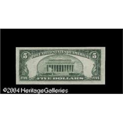 Fr. 1653* $5 1934C Mule Silver Certificate. About Unc <B>Fr. 1653* $5 1934C Mule Silver Certificate. About Uncirculated.</B></I><BR>Back check 637, a just plain rare star, especially in this grade. There is a short repaired split at the top of the note which is barely detectable. <BR><BR><B>Important notice:</B> Heritage usually auctions material at the rate of 200-250 lots per hour. On some occasions eBay Live bid software or the Internet may not be able to keep up with the pace of the auction. We recommend placing a realistic absentee bid now as insurance to avoid disappointment. Occasionally the auctioneer may eliminate or reject an eBay Live bid, and the auctioneer may also reopen a lot after the close of the eBay live bidding (usually because we missed an audience bid), and may reject your bid even if it shows you as the winning bidder. By bidding via eBay Live, you agree that Heritage may award the lot to another bidder at its sole discretion under the circumstances described above or any other reasonable circumstances. Since eBay bids are not shown to us until we open the lot on the floor, we treat those bids just like floor bids. In most cases the floor responds before the eBay bid is presented to us, due to Internet lag time, so for consistency we have made it a policy that floor bids are always considered first over tie eBay live bids. Also please note that all Heritage lots purchased through eBay Live carry a 20% Buyer's Premium. Please make sure you read the Terms and Conditions before you bid. This lot is being auctioned in conjunction with a live floor auction by Heritage Galleries & Auctioneers. All final auction and invoice information will be supplied by Heritage Galleries & Auctioneers, and all other information should be considered preliminary. Lot:16248