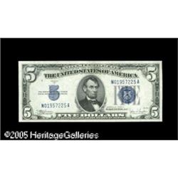<B>Fr. 1653 $5 1934C Mule Silver Certificate. Choice Crisp Uncirculated.</B></I><BR>The exceptionally tough Mule variety with back plate 629, rare enough so that this is the only such example in this extraordinary collection. It realized over $2000 when we last offered it in January of 2001, and should not be worth any less today. Lot:15703