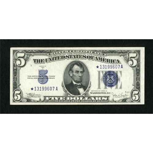 Fr. 1653* $5 1934C Silver Certificate. About