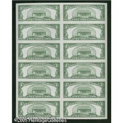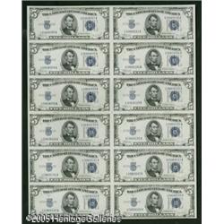 <B>Fr. 1653 $5 1934C Silver Certificate. Uncut Sheet of 12. Gem Crisp Uncirculated.</B></I><BR>A Gem sheet of simply superlative quality. The 5th edition of the Oakes-Schwartz lists a known population of a scant 10 of this sheet, including the example we offer here. Compared with the price:population ratio of $1 Silver Certificate sheets this item remains a real sleeper.<BR><I>Acquired from Lyn Knight.</B></I> Lot:15702