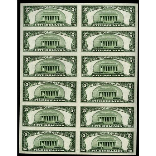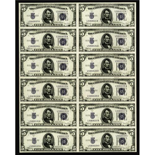 <B>Fr. 1653 $5 1934C Silver Certificates. Uncut Sheet of 12. Gem Crisp Uncirculated.</B></I><BR>This is one of ten sheets recorded in the latest edition of the Oakes-Schwartz reference. In fact, this population number has not increased at all from the fifth edition. A great opportunity for the astute collector.