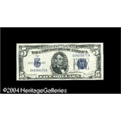 Fr. 1653/Fr. 1654 $5 1934C/1934D Silver Certificates. C <B>Fr. 1653/Fr. 1654 $5 1934C/1934D Silver Certificates. Changeover Pair. Gem Crisp Uncirculated.</B></I><BR>An attractive changeover pair which realized $400 when sold at auction back in 2004.<BR> 2 notes <BR><BR><B>Important notice:</B> Heritage usually auctions material at the rate of 200-250 lots per hour. On some occasions eBay Live bid software or the Internet may not be able to keep up with the pace of the auction. We recommend placing a realistic absentee bid now as insurance to avoid disappointment. Occasionally the auctioneer may eliminate or reject an eBay Live bid, and the auctioneer may also reopen a lot after the close of the eBay live bidding (usually because we missed an audience bid), and may reject your bid even if it shows you as the winning bidder. By bidding via eBay Live, you agree that Heritage may award the lot to another bidder at its sole discretion under the circumstances described above or any other reasonable circumstances. Since eBay bids are not shown to us until we open the lot on the floor, we treat those bids just like floor bids. In most cases the floor responds before the eBay bid is presented to us, due to Internet lag time, so for consistency we have made it a policy that floor bids are always considered first over tie eBay live bids. Also please note that all Heritage lots purchased through eBay Live carry a 20% Buyer's Premium. Please make sure you read the Terms and Conditions before you bid. This lot is being auctioned in conjunction with a live floor auction by Heritage Galleries & Auctioneers. All final auction and invoice information will be supplied by Heritage Galleries & Auctioneers, and all other information should be considered preliminary. Lot:16246