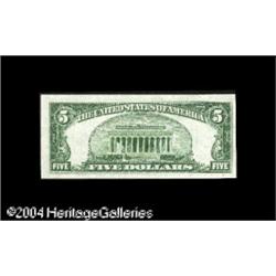 Fr. 1654* $5 1934D Silver Certificate. Choice About Unc <B>Fr. 1654* $5 1934D Silver Certificate. Gem Crisp Uncirculated.</B></I><BR>A fresh and original Wide I star note. <BR><BR><B>Important notice:</B> Heritage usually auctions material at the rate of 200-250 lots per hour. On some occasions eBay Live bid software or the Internet may not be able to keep up with the pace of the auction. We recommend placing a realistic absentee bid now as insurance to avoid disappointment. Occasionally the auctioneer may eliminate or reject an eBay Live bid, and the auctioneer may also reopen a lot after the close of the eBay live bidding (usually because we missed an audience bid), and may reject your bid even if it shows you as the winning bidder. By bidding via eBay Live, you agree that Heritage may award the lot to another bidder at its sole discretion under the circumstances described above or any other reasonable circumstances. Since eBay bids are not shown to us until we open the lot on the floor, we treat those bids just like floor bids. In most cases the floor responds before the eBay bid is presented to us, due to Internet lag time, so for consistency we have made it a policy that floor bids are always considered first over tie eBay live bids. Also please note that all Heritage lots purchased through eBay Live carry a 20% Buyer's Premium. Please make sure you read the Terms and Conditions before you bid. This lot is being auctioned in conjunction with a live floor auction by Heritage Galleries & Auctioneers. All final auction and invoice information will be supplied by Heritage Galleries & Auctioneers, and all other information should be considered preliminary. Lot:16250