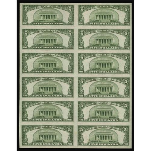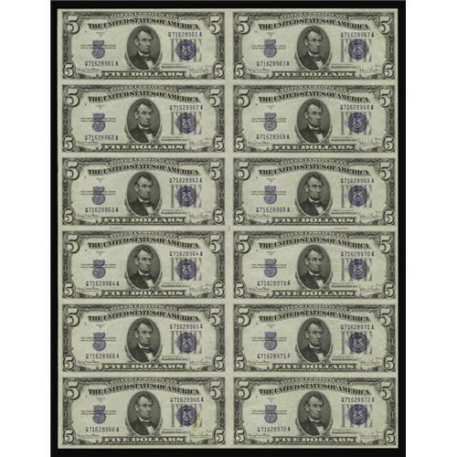 <B>Fr. 1654 $5 1934D Silver Certificate Uncut Sheet of 12. Gem Crisp Uncirculated</B></I><BR>This lovely uncut sheet is one of 26 listed in the latest edition of the Schwartz-Oakes reference and is of a condition that we doubt even the most dedicated search could surpass.