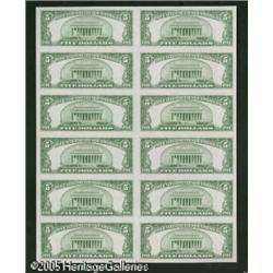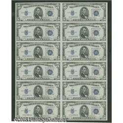 <B>Fr. 1654 $5 1934D Silver Certificate. Uncut Sheet of 12. Gem Crisp Uncirculated.</B></I><BR>This lovely Gem sheet is one of 26 listed in the latest edition of the Oakes-Schwartz reference. It is certainly of a quality level which will be difficult to surpass no matter how long and diligent the search.<BR><I>Acquired from Lyn Knight.</B></I> Lot:15704