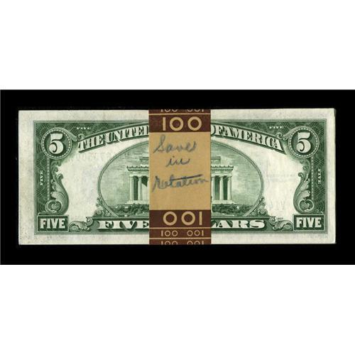 <B>Fr. 1654 $5 1934D Silver Certificates. Twenty Consecutive Examples Very Choice Crisp Uncirculated.</B></I><BR>Great embossing, wide margins, and deep inks are seen on these notes with some that are true Gems.<BR><BR><b>Shipping:</b> Coins & Currency (<a target="_blank" href="http://www.heritageauctions.com/common/shipping.php">view shipping information</a>)