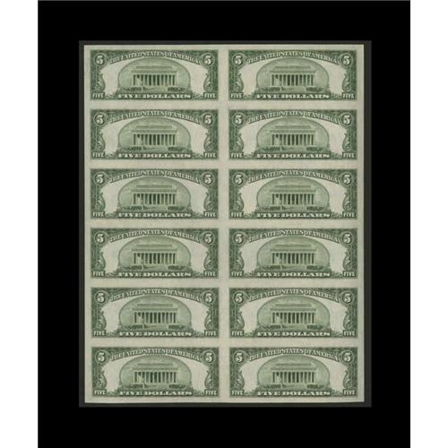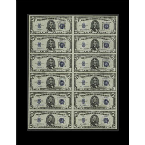 <B>Fr. 1654 $5 1934D Silver Certificates. Uncut Sheet of 12. Gem Crisp Uncirculated.</B></I><BR>This sheet is quite special in that it bears the lowest serial number of the 100 sheets released to the general public. As such, it will be an enhancement to any collection of Small Size that it enters. Coupled with its exceptional state of preservation, its status as the lowest number printed for the uncut sheet format release will likely generate considerable bidder interest.
