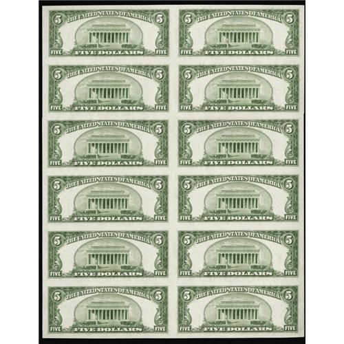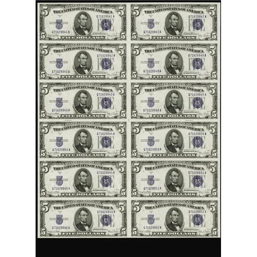 <B>Fr. 1654 $5 1934D Silver Certificate. Uncut Sheet of 12. Gem Crisp Uncirculated.</B></I><BR>Serial number embossing is visible on every note. This sheet is not recorded in the Oakes tome.