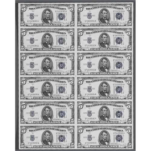<B>Fr. 1654 $5 1934D Wide I Silver Certificates. Uncut Sheet of 12. Gem Crisp Uncirculated.</B></I><BR>This is an embossed, well preserved uncut sheet.<BR><I>From The Wilhelmina Collection</B></I><BR><BR><b>Shipping:</b> Coin/Currency (<a target="_blank" href="http://www.heritageauctions.com/common/shipping.php">view shipping information</a>)