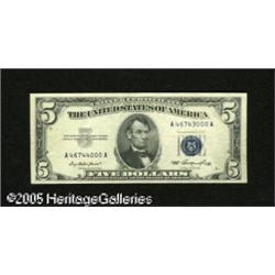 <B>Fr. 1656 $5 1953A Silver Certificate. About Uncirculated.</B></I><BR>A very neat single-digit mismatch that creates a higher solid thousand. Mismatches are rarely encountered on this issue and should cause some stir among collectors. Lot:15194
