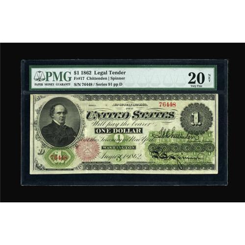 Fr. 17 $1 1862 Legal Tender PMG Very Fine 20