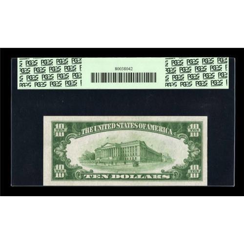 <B>Fr. 1700 $10 1933 Silver Certificate. PCGS Choice New 63PPQ.</B></I><BR> The 1933 $10 Silver is considered the key note for a small size collection and thus it is on every serious collector's want list. This delightful example has prominent embossing of the serial numbers and Treasury Seal while natural paper ripple is also observed. The new Schwartz and Lindquist reference values this rarity at $20,000 in Choice CU condition. <BR><BR><b>Shipping:</b> Coins & Currency (<a target="_blank" href="http://www.heritageauctions.com/common/shipping.php">view shipping information</a>)