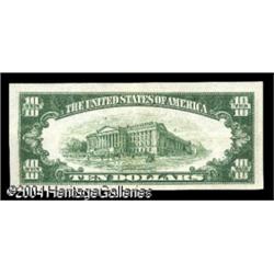 Fr. 1701* $10 1934 Silver Certificate. Choice About U <B>Fr. 1701* $10 1934 Silver Certificate. Choice About Uncirculated.</B></I><BR>This is a very lightly circulated example of an extremely difficult silver certificate star note which is sure to please the fussiest of collectors. The paper is fresh and bright with pretty good margins and excellent ink colors. <BR><BR><B>Important notice:</B> Heritage usually auctions material at the rate of 200-250 lots per hour. On some occasions eBay Live bid software or the Internet may not be able to keep up with the pace of the auction. We recommend placing a realistic absentee bid now as insurance to avoid disappointment. Occasionally the auctioneer may eliminate or reject an eBay Live bid, and the auctioneer may also reopen a lot after the close of the eBay live bidding (usually because we missed an audience bid), and may reject your bid even if it shows you as the winning bidder. By bidding via eBay Live, you agree that Heritage may award the lot to another bidder at its sole discretion under the circumstances described above or any other reasonable circumstances. Since eBay bids are not shown to us until we open the lot on the floor, we treat those bids just like floor bids. In most cases the floor responds before the eBay bid is presented to us, due to Internet lag time, so for consistency we have made it a policy that floor bids are always considered first over tie eBay live bids. Also please note that all Heritage lots purchased through eBay Live carry a 20% Buyer's Premium. Please make sure you read the Terms and Conditions before you bid. This lot is being auctioned in conjunction with a live floor auction by Heritage Galleries & Auctioneers. All final auction and invoice information will be supplied by Heritage Galleries & Auctioneers, and all other information should be considered preliminary. Lot:16257