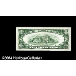 Fr. 1703 $10 1934B Silver Certificate. Very Choice Cr <B>Fr. 1703 $10 1934B Silver Certificate. Very Choice Crisp Uncirculated.</B></I><BR>Most all of the high grade 1934B $10 Silvers that we have handled over the years are "wannabee" Uncirculated examples. This piece is a happy exception. It comes from the short run of 1934B tens which has provided almost all of the truly uncirculated examples known, and is bright and well centered. There is just the trace of handling present, which compels us to call it Very Choice rather than Gem, but our guess is that the higher grade rather than the lower will likely be used in this note's next offering. <BR><BR><B>Important notice:</B> Heritage usually auctions material at the rate of 200-250 lots per hour. On some occasions eBay Live bid software or the Internet may not be able to keep up with the pace of the auction. We recommend placing a realistic absentee bid now as insurance to avoid disappointment. Occasionally the auctioneer may eliminate or reject an eBay Live bid, and the auctioneer may also reopen a lot after the close of the eBay live bidding (usually because we missed an audience bid), and may reject your bid even if it shows you as the winning bidder. By bidding via eBay Live, you agree that Heritage may award the lot to another bidder at its sole discretion under the circumstances described above or any other reasonable circumstances. Since eBay bids are not shown to us until we open the lot on the floor, we treat those bids just like floor bids. In most cases the floor responds before the eBay bid is presented to us, due to Internet lag time, so for consistency we have made it a policy that floor bids are always considered first over tie eBay live bids. Also please note that all Heritage lots purchased through eBay Live carry a 20% Buyer's Premium. Please make sure you read the Terms and Conditions before you bid. This lot is being auctioned in conjunction with a live floor auction by Heritage Galleries & Auctioneers. All final auction and invoice information will be supplied by Heritage Galleries & Auctioneers, and all other information should be considered preliminary. Lot:16262