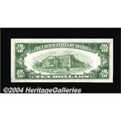 Fr. 1704* $10 1934C Silver Certificate. Choice Crisp Uncirculated.A crackling fresh star note which would be gem were it not for the slightest bit of light handling. <BR><BR><B>Important notice:</B> Heritage usually auctions material at the rate of 200-250 lots per hour. On some occasions eBay Live bid software or the Internet may not be able to keep up with the pace of the auction. We recommend placing a realistic absentee bid now as insurance to avoid disappointment. Occasionally the auctioneer may eliminate or reject an eBay Live bid, and the auctioneer may also reopen a lot after the close of the eBay live bidding (usually because we missed an audience bid), and may reject your bid even if it shows you as the winning bidder. By bidding via eBay Live, you agree that Heritage may award the lot to another bidder at its sole discretion under the circumstances described above or any other reasonable circumstances. Since eBay bids are not shown to us until we open the lot on the floor, we treat those bids just like floor bids. In most cases the floor responds before the eBay bid is presented to us, due to Internet lag time, so for consistency we have made it a policy that floor bids are always considered first over tie eBay live bids. Also please note that all Heritage lots purchased through eBay Live carry a 20% Buyer's Premium. Please make sure you read the Terms and Conditions before you bid. <BR><BR><B>IMPORTANT ANNOUNCEMENT ABOUT RESERVES:</B> Heritage now divulges all reserves on its web site 7 days before every auction. If you want to know whether the reserve on this lot has been met, and if not, what the reserve amount is, please visit this lot page on the HeritageCoin.com web site, or email: bid@HeritageGalleries.com