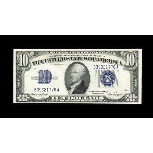 <B>Fr. 1705 $10 1934D Silver Certificate. Choice Crisp Uncirculated.</B></I><BR>A bright, well margined example from a tougher series.<BR><BR><b>Shipping:</b> Coin/Currency (<a target="_blank" href="http://www.heritageauctions.com/common/shipping.php">view shipping information</a>)