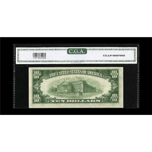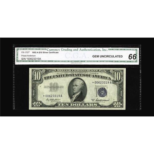 <B>Fr. 1707* $10 1953A Silver Certificate. CGA Gem Uncirculated 66.</B></I><BR>The pack freshness retained by this blast white specimen is quite obvious.
