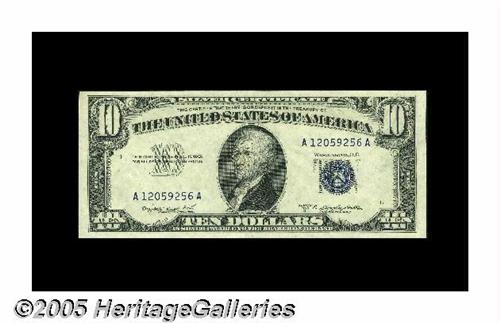 <B>Fr. 1708 $10 1953B Silver Certificate. CGA Gem Uncirculated 66.</B></I><BR>This $10 Silver from the last series is broadly margined.