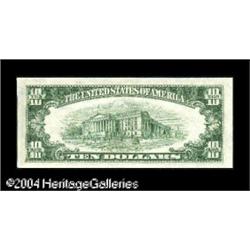 Fr. 1708 $10 1953B Silver Certificate. Very Choice Cris <B>Fr. 1708 $10 1953B Silver Certificate. Very Choice Crisp Uncirculated.</B></I><BR>This is a rather nice example from this final issue which has excellent embossing and broad margins but also some natural paper wrinkles which do not affect the grade. <BR><BR><B>Important notice:</B> Heritage usually auctions material at the rate of 200-250 lots per hour. On some occasions eBay Live bid software or the Internet may not be able to keep up with the pace of the auction. We recommend placing a realistic absentee bid now as insurance to avoid disappointment. Occasionally the auctioneer may eliminate or reject an eBay Live bid, and the auctioneer may also reopen a lot after the close of the eBay live bidding (usually because we missed an audience bid), and may reject your bid even if it shows you as the winning bidder. By bidding via eBay Live, you agree that Heritage may award the lot to another bidder at its sole discretion under the circumstances described above or any other reasonable circumstances. Since eBay bids are not shown to us until we open the lot on the floor, we treat those bids just like floor bids. In most cases the floor responds before the eBay bid is presented to us, due to Internet lag time, so for consistency we have made it a policy that floor bids are always considered first over tie eBay live bids. Also please note that all Heritage lots purchased through eBay Live carry a 20% Buyer's Premium. Please make sure you read the Terms and Conditions before you bid. This lot is being auctioned in conjunction with a live floor auction by Heritage Galleries & Auctioneers. All final auction and invoice information will be supplied by Heritage Galleries & Auctioneers, and all other information should be considered preliminary. Lot:16273