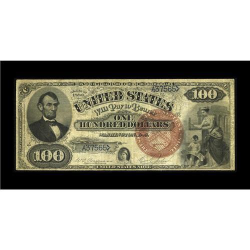 <B>Fr. 174 $100 1880 Legal Tender Fine.</B></I> Less than twenty examples of this Friedberg number are known in all grades combined. This piece, though well circulated, is wholly presentable, and with much better overall eye appeal than one would expect for the Fine grade. Its only problem is a tiny repair at the lower left corner--wholly outside the design. Appearances of this number at public sale are few and far between with only four examples having reached the auction block in the past seven years. These Large Red Seals had a tendency to fade as the notes circulated, but luckily that has not occurred on this note, and the seal is dark and bold with all of its detail distinct. The note is also very well margined both face and back, and save for the single corner repair, it is utterly unmolested. We sold a comparable example last September for over $12,000 and we would expect this pretty piece to do just about as well.<BR><I>From The Bill and Kathy Stella Currency Collection</B></I><BR><BR><b>Shipping:</b> Coin/Currency (<a target="_blank" href="http://www.heritageauctions.com/common/shipping.php">view shipping information</a>)